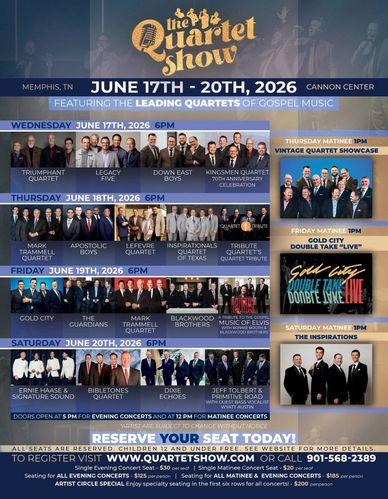 The 13th Annual Quartet Show will take place June 17-20, 2026, at the Cannon Center in Memphis, Tennessee.